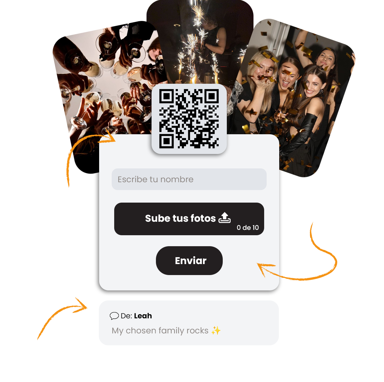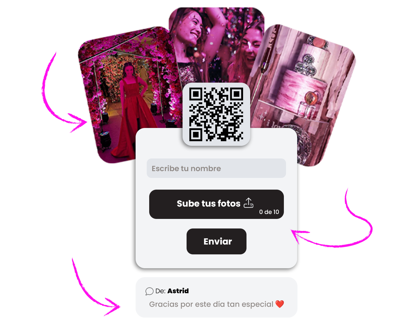 Te enviamos únicamente el QR para que lo agregues a tu invitación o cartel como prefieras.
